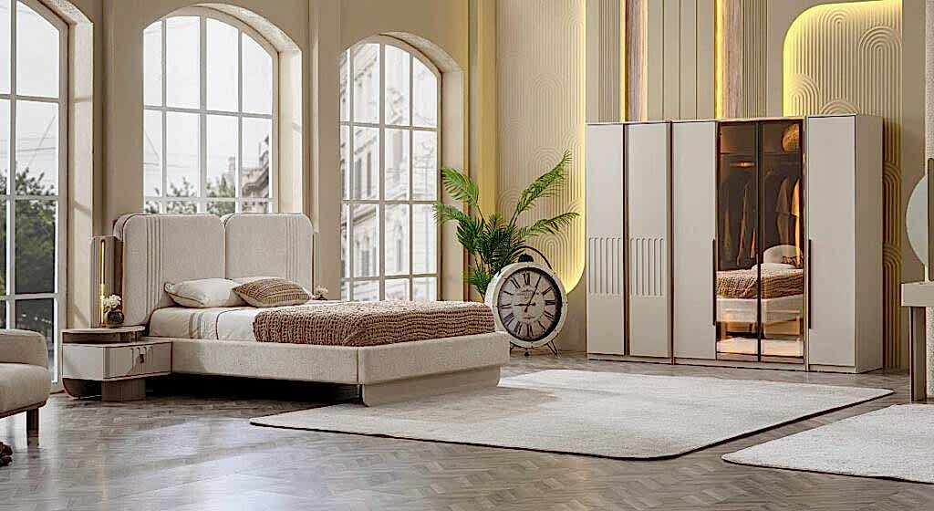Maximo, zengin kumaş ve renk seçeneklerinin yanı sıra kullanışlı modülleriyle şık ve göz alıcı yatak odalarına imza atıyor.