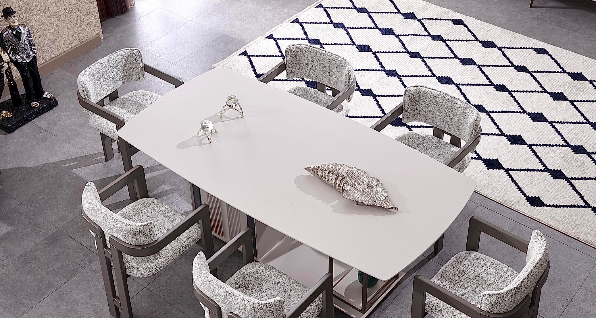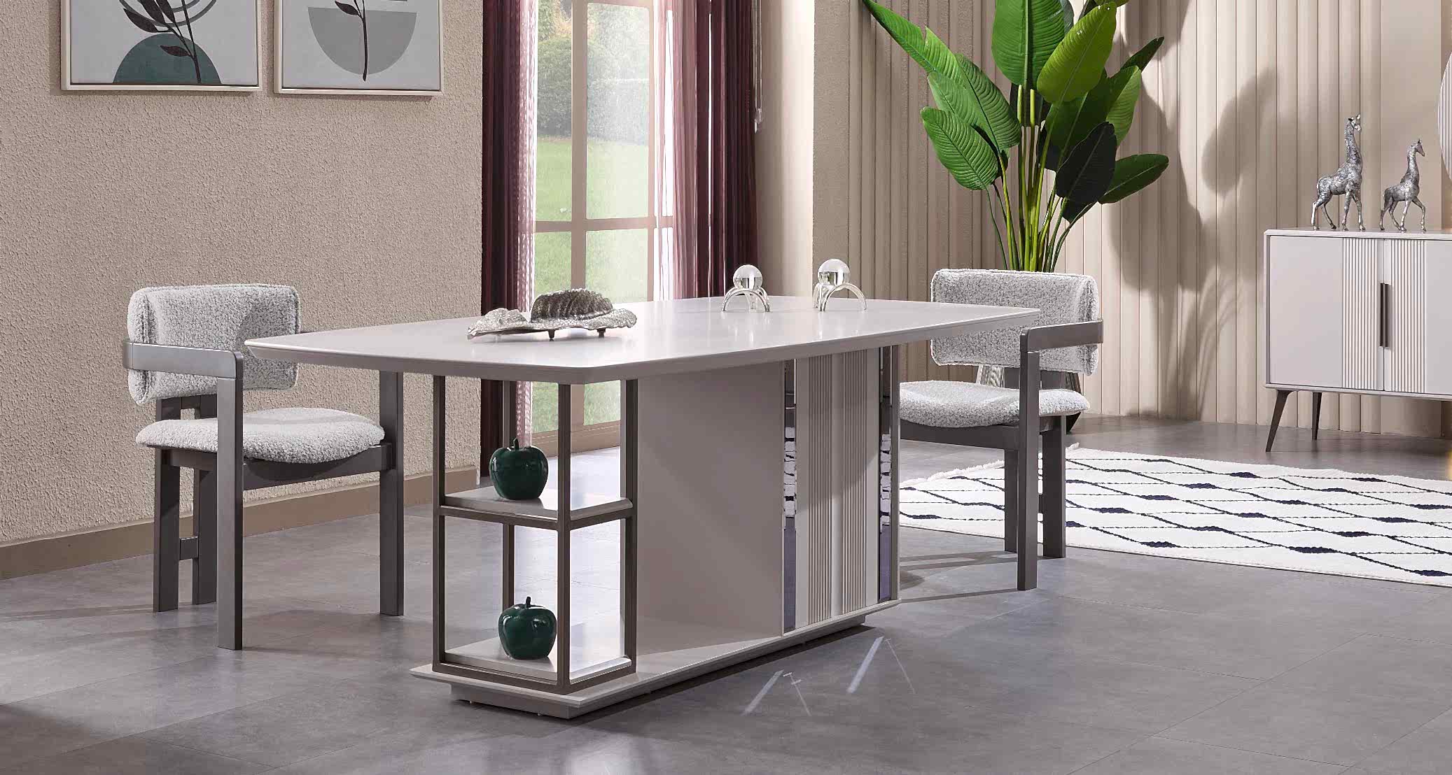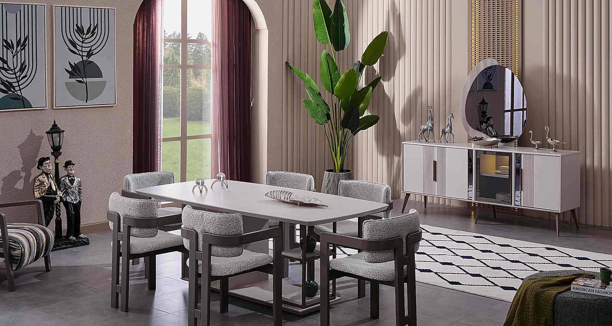 Temizliği ve düzeni simgeleyen renk tonları ve minimal tasarım dokunuşları ile yemek odanızı her zaman düzenli ve modern gösterecek olan Cenova Yemek Odası Takımı ile tanışın. Özel tasarımlı masa gövdesinde yer alan raf kısmı, modern ve ekstra konforlu sandalyeleri ve elbette eşyalarınızı en düzenli şekilde yerleştirebileceğiniz konsolu ile her detayında özen göreceksiniz. Yepyeni bir yaşamı alanı tasarlamak için tercih edebileceğiniz en özgün yemek takımı olan Cenova Maximo Mobilya’da zevk sahiplerini bekliyor.