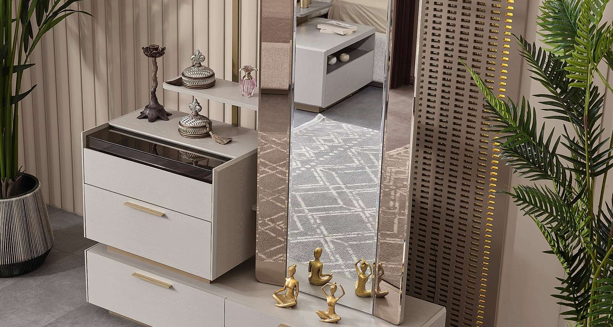Lüksün en sade ve minimal şekilde yansıtıldığı Napoli Yatak Odası Takımı ile tanışın! Yansımalardan, karmaşadan uzak bir şekilde de sitili ve gösterili olunabileceğini kanıtlayan Napoli Yatak Odası Takımı günlük yaşamı kolaylaştıran özellikleriyle de tüm dikkatleri üzerine çekiyor. Kolay açılabilir kaliteli mekanizmalara sahip baza ve çekmece sistemleri, eşyalarınızı düzeni bir şekilde yerleştirebileceğiniz farklı bölmeleri ile hem konforlu hem de şıklığı aynı anda sunuyor.